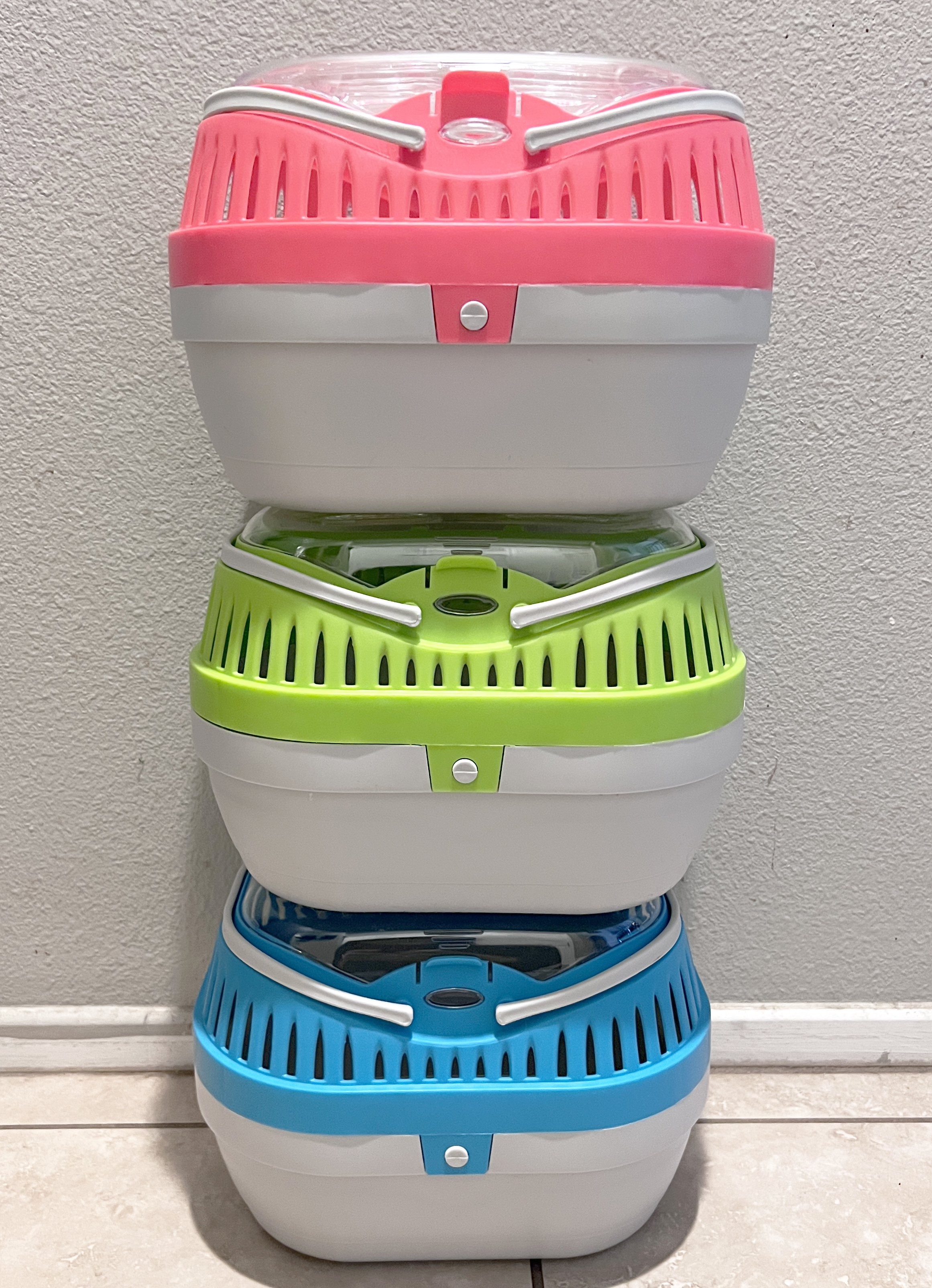 This is just a basic small pet carrier if you need one and would like to buy so it's ready at pickup. You can also use it for travel or just cage cleaning. It will come with a bit of fluffy paper bedding in it. Colors are assorted and will vary! Subject to availability.