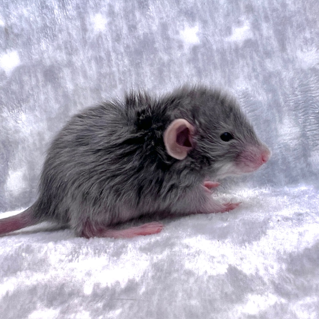 Sex: Male Color: Russian Blue Markings: Headspot Berkshire Fur: Harley Ears: Dumbo Eyes: Black Tail: Standard Size: Standard